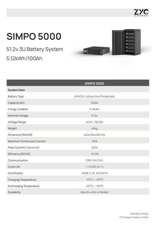 100 Amp/Hour, 48 Volt, 5.12 KWH Lithium Battery