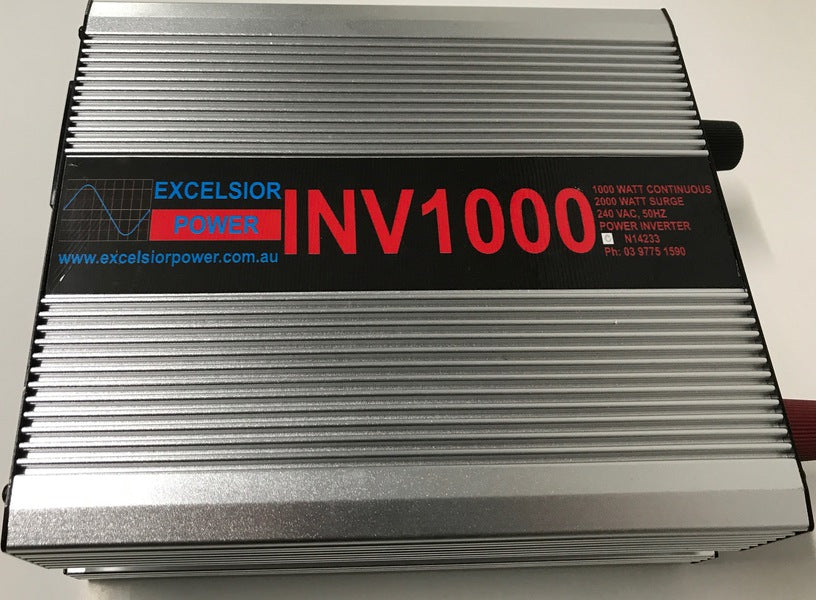 The Excelsior Power INV1000 Inverter provides clean, silent 240 vac power for your mains appliances from 24 volt battery power. Unlike most inverters, which can damage 240 VAC motors such as those found in refrigerators, the INV series incorporates Active Power Correction, so that fridges don’t overheat and fail prematurely. The units also have a low battery warning, low battery, overload and overtemp protection. The unit is extremely reliable and sturdy owing to its strong extruded casing, PCB construction and full electronic fault protection.