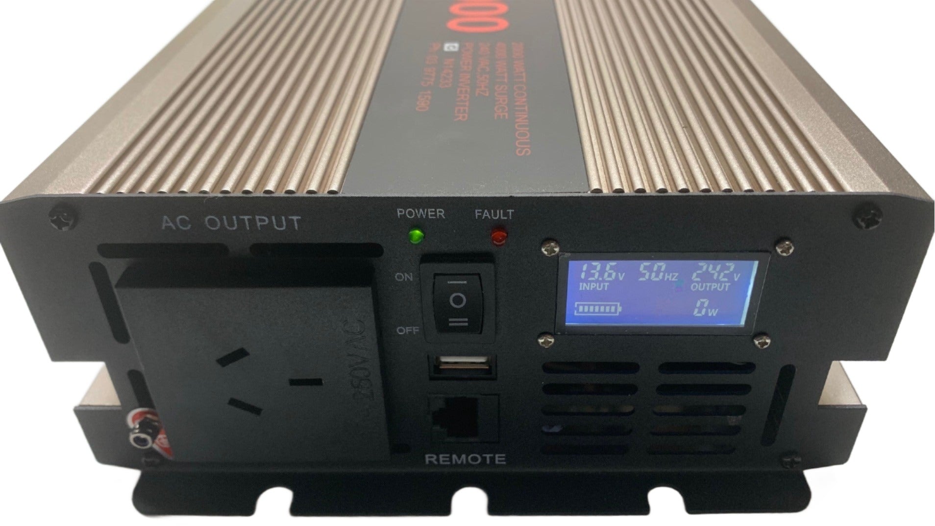 The Excelsior Power PSX2000/24 Inverter provides clean, silent 240 VAC power for your mains appliances from 24 volt battery power. The PSX series has extra protection for harsh environments as well as extra features such as remote control and indicators for vital paramaters such as battery voltage, wattage and output voltage! The PSX2000/24 provides a pure sine-wave output, which is the cleanest power available for those applications that require the very cleanest & purest in power. They are microprocessor controlled and have full electronic fault protection. They also have a 4 digital display to show battery voltage, output voltage and wattage values, as well as LED indicators to indicate Power and Fault conditions. The unit also features a very low standby current to save power