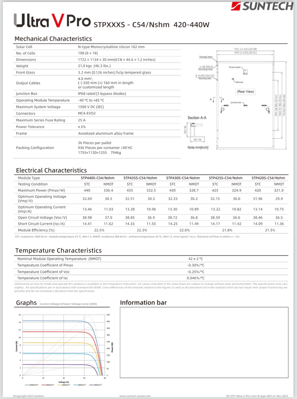 MAXIMUM POWER: 440 W DIMENSIONS: 1134 by 1722